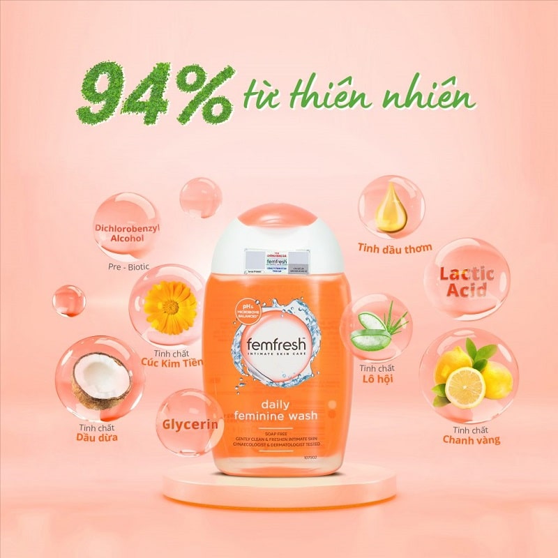 Thành phần chính dung dịch vệ sinh phụ nữ cao cấp hằng ngày Femfresh Daily Intimate 150ml